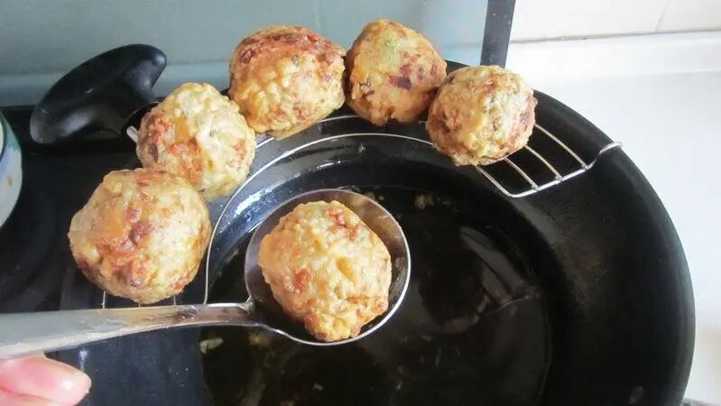炸好后的糯米鸡外表金黄,面凸凹不平,形如鸡皮,故而由此简称。糯米鸡里没有鸡,湖北人心照不宣,但是吃起来外层焦脆,内里绵软有米香伴着肉香,没有鸡肉照样香得很。