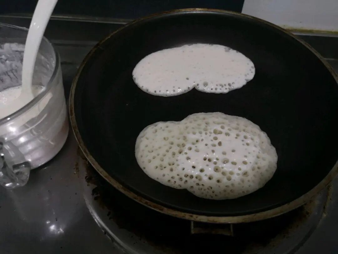 米浆在专门的平底锅里压制发酵,表面大大小小的气泡,略微焦黄,吃起来带着酒香,脆脆的。湖北的小孩子看到街上的摊铺就舍不得挪步子,即使长大后不常吃,想起来也变成了淡淡的乡愁。