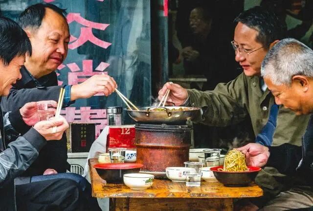 牛蹄、牛肉、牛杂、肥肠火锅来一份,喝点散酒,吃口肉,那才能慢下来和街坊邻居聊会儿。