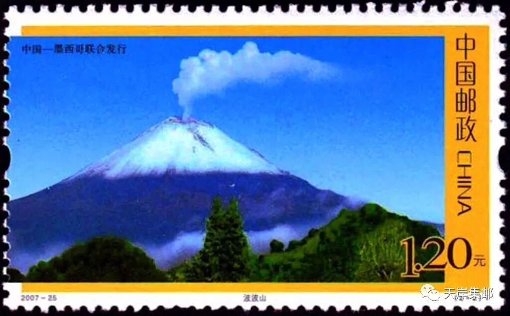 2007年11月22日,为了纪念两国建交35周年和增进两国人民的友谊,国家邮政局和墨西哥邮政联合发行了《贡嘎山与波波山》特种邮票,全套2枚。