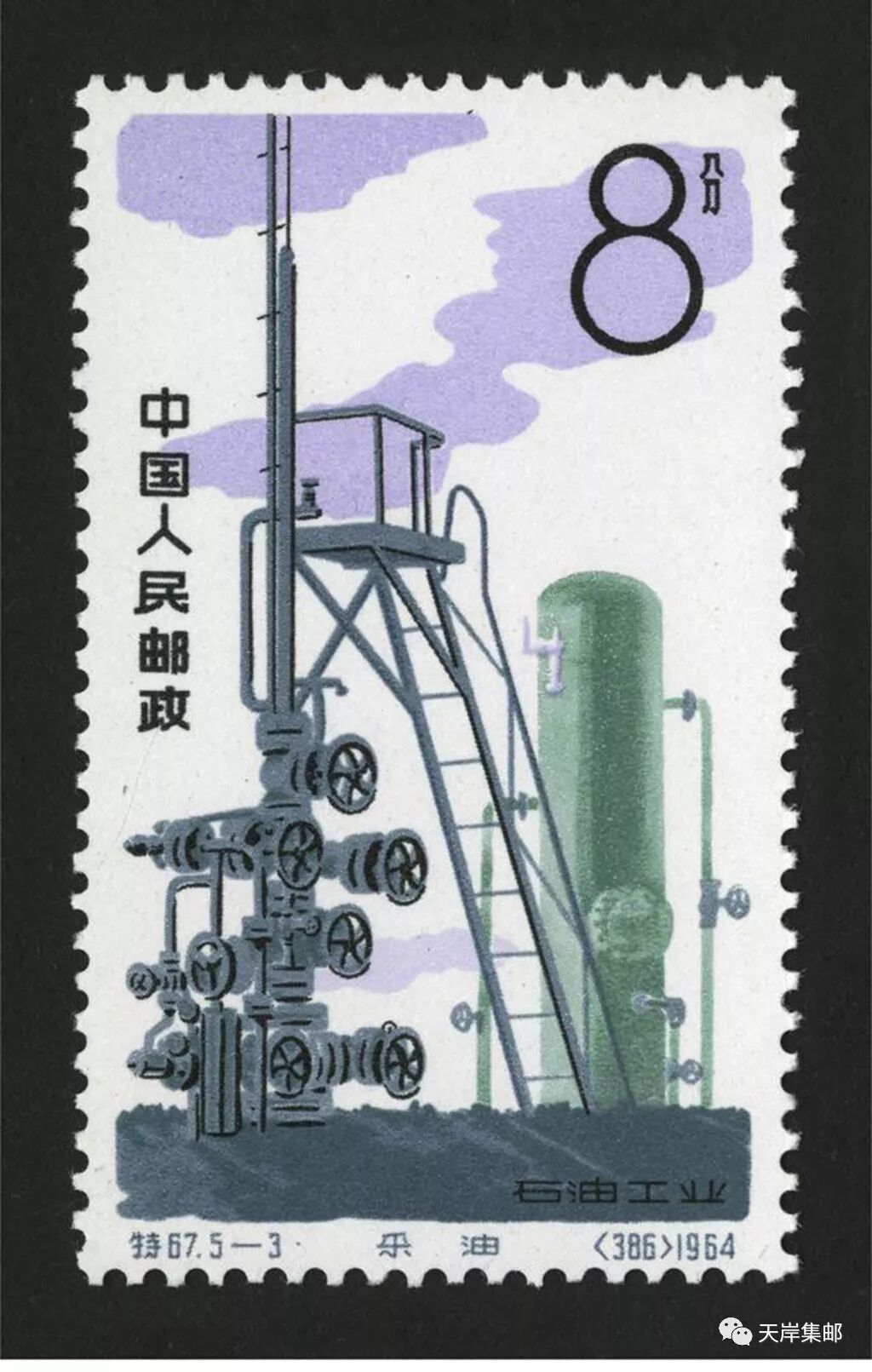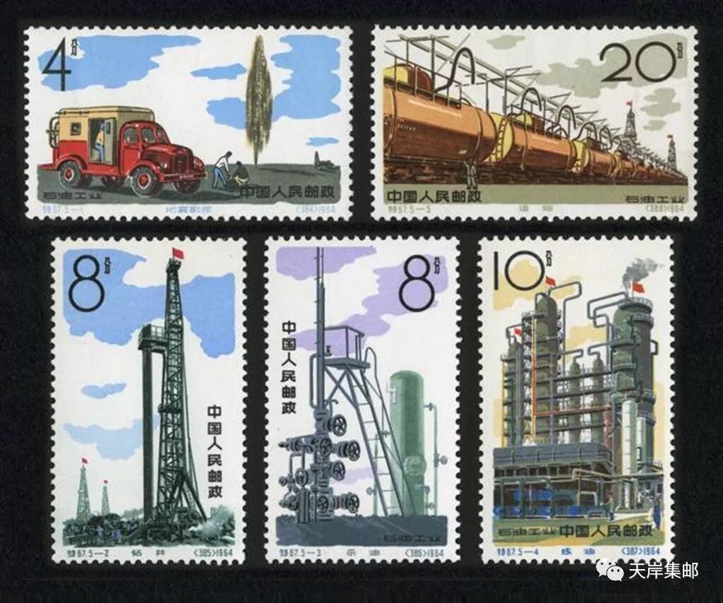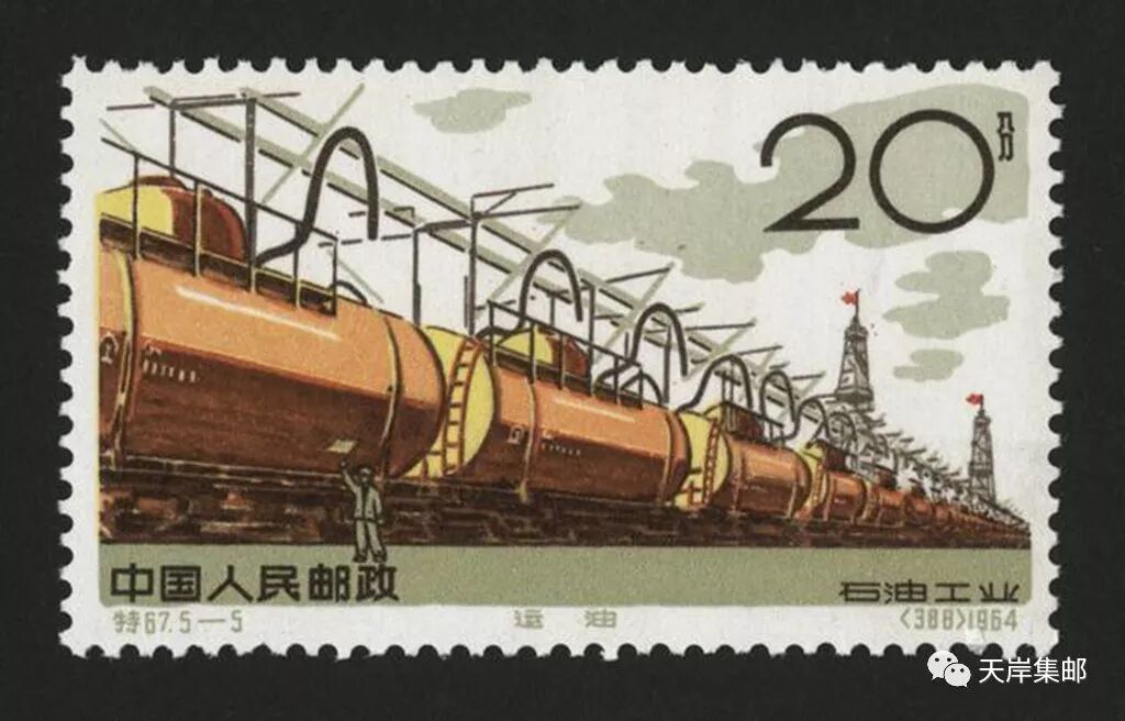 为庆祝祖国石油工业在60年代初取得辉煌成就,我国邮电部于1964年10月1日发行了特67《石油工业》特种邮票,全套5枚。邮票设计者为刘硕仁,由北京邮票厂印制。邮票图案分别为:“地震勘探”“钻井”“采油”“炼油”“运油”。