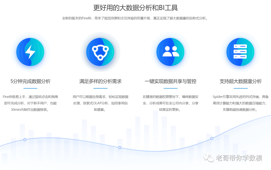 另外目前很多商业大数据分析工具也很好用,毕竟也不是所有企业都愿意用编程去处理数据的,这里介绍一下FineBI,FineBI是为大数据量提供数据处理、ETL、Dashboard报表展示、动态分析、报表管理的可视化分析工具。