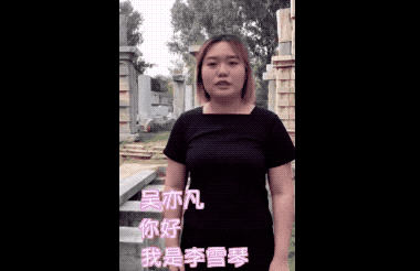 她操着一口东北口音指着清华园的门说:“吴亦凡你好,我是李雪琴,今天我来到了清华大学,看,这是清华大学的校门,多白。”