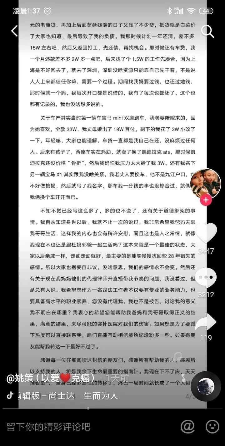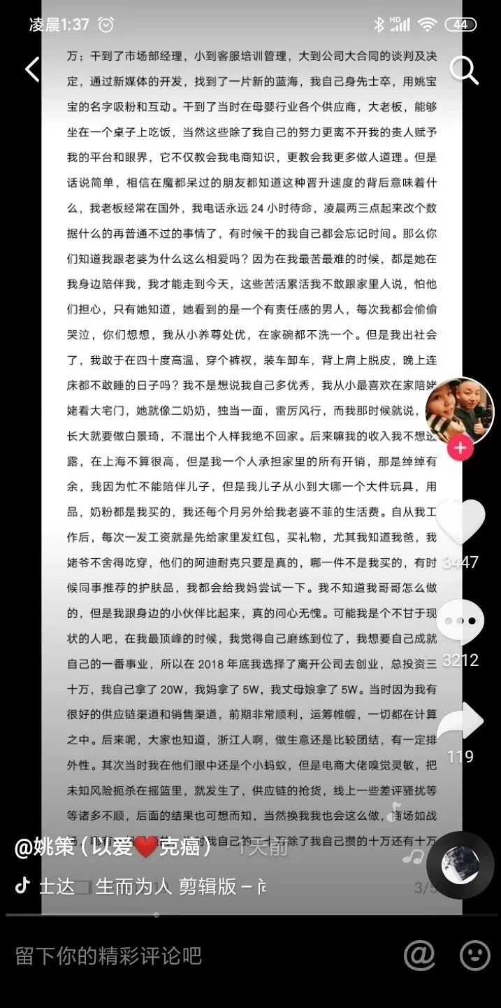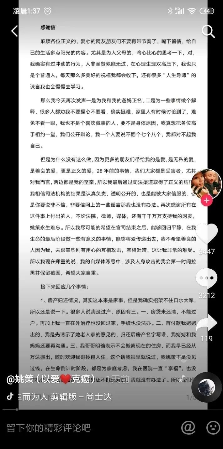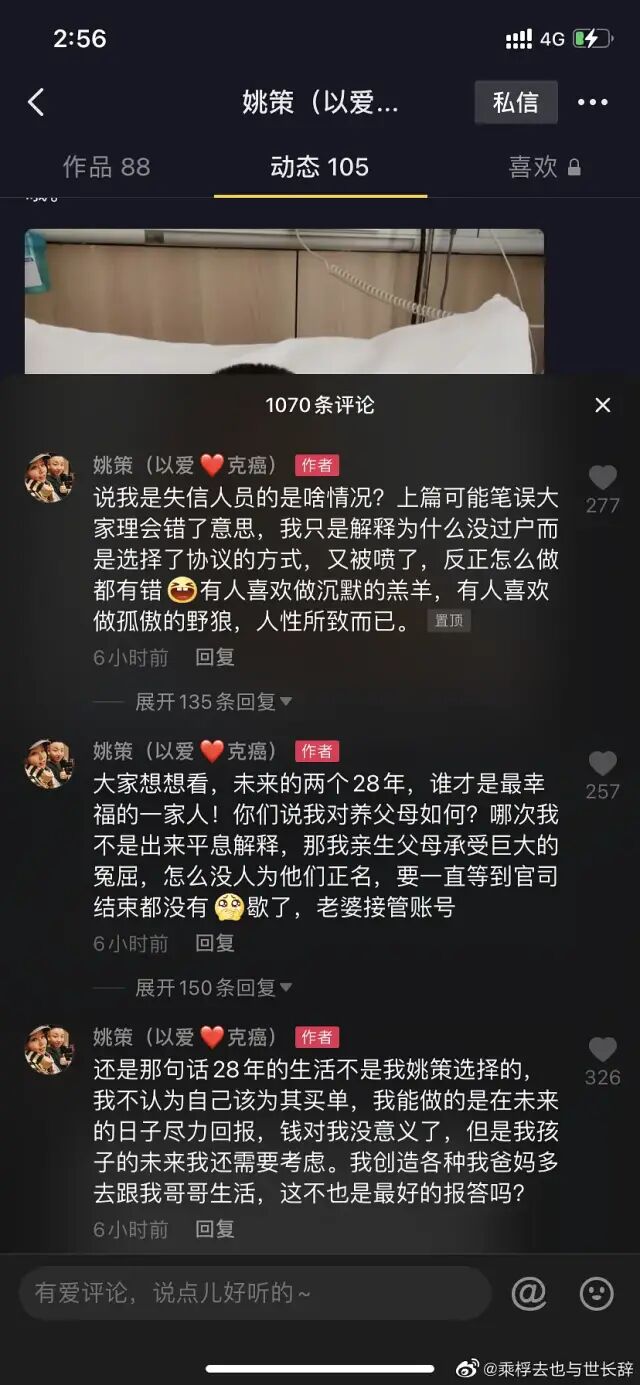 如今,面对网友们的质疑,姚策直接否认养父母安排工作,否认创业失败,否认和养父母要钱,