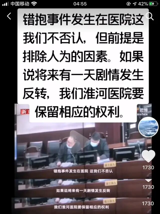 同时,医院律师在法庭上表示:如果发生反转,将保留追责权利。