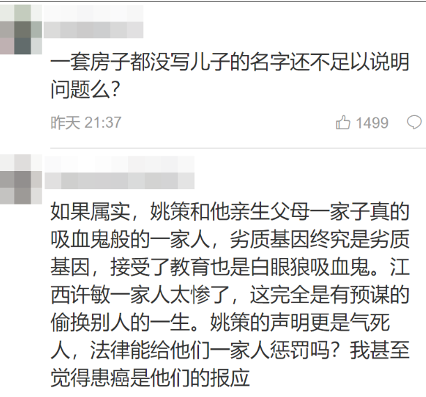 而另一边,姚策的亲生父母告诉媒体,这是对姚策的网络暴力。