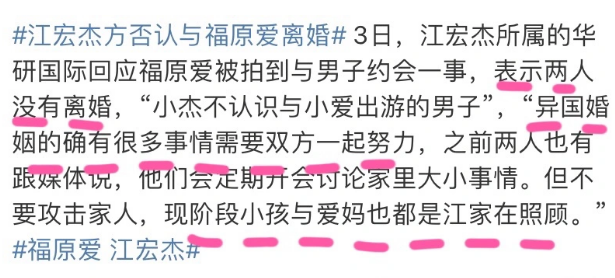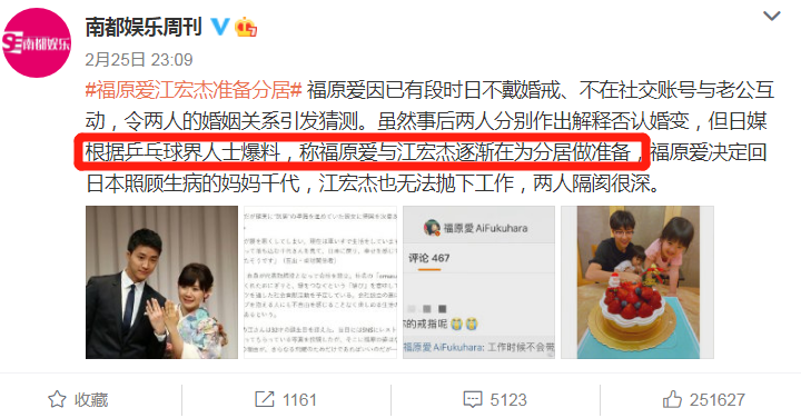 之后该网友还表示:婆婆也曾对福原爱说:你是我们家的生财之道。江宏杰的姐姐还曾在电话里怒骂福原爱:都是你害我们家里气氛变得很糟!比如,有媒体表示福原爱的青春都用于打球,上真人秀之前她连夜店都没去过。江宏杰的言行,和真人秀里江宏杰温柔的样子大相径庭。当然,其实不考虑媒体的爆料,只看福原爱婚后的情况和现在的发展计划,其实也能感觉到,这段婚姻的确到了甜蜜褪去之后的考验期了。尤其对江宏杰和福原爱来说,虽然同是乒乓球选手,但两个人在事业上的差距难免影响婚姻。从球技来讲,福原爱的最好成绩是奥运会女单第四名,而江宏杰没有参加过奥运会。从吸金能力来讲,江宏杰与福原爱结婚之前年收入是20万左右,而福原爱是他的三十倍。从人气名气来讲,福原爱是星光闪耀的中日体育明星,而江宏杰只是无名小辈。早在之前,就多次被日本媒体诟病配不上福原爱,民众用“下嫁”这样的词来形容这段婚姻。虽然当时两个人义无反顾,但经历了生儿育女后,也难免有新的体会。所以福原爱开始抱怨“想家”,“一个人照顾女儿太疲惫”,“想回日本让孩子上学”,而江宏杰也开始多次涉足娱乐圈,参加真人秀,奋力打拼。最终都没能和对方产生交集,甚至彼此的距离越来越远。更客观的来看,他们之间,倒像是两个少年都遇到了渐渐跨入真实成年人世界的自己。所有的成长都是残酷的,更残酷的是,成长避无可避,唯有面对。福原爱就像是一面镜子,反映的不仅是他们夫妻之间的问题,还有很多夫妻共同的日常。归根结底,婚姻是生活中甜蜜的联合,充满坚贞、忠诚,以及难以计数的利益的牢靠。![]()