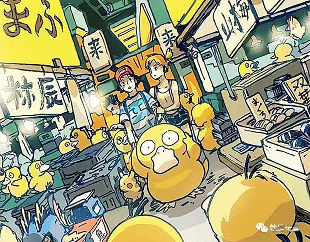 可以看到从叫卖的商贩,到拖家带口的主妇全部都是圆滚滚的可达鸭!似乎隔着画面都能感受到无数只鸭子的吵杂呱呱声