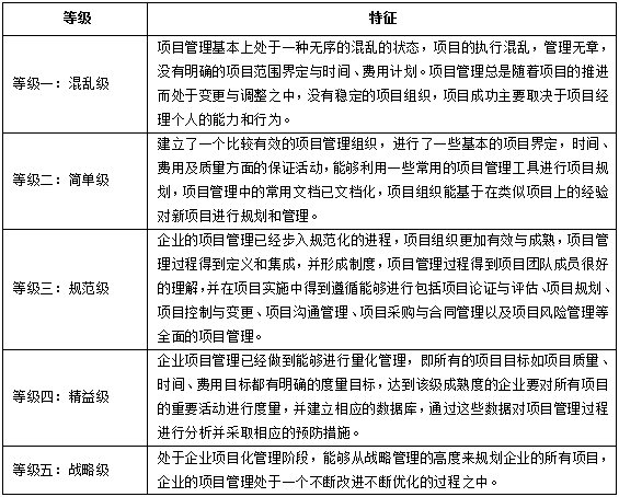 根据项目管理理论,企业的项目管理能力可以分为五个等级。