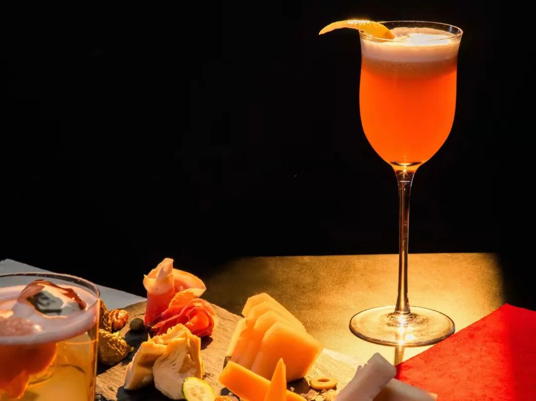 店里主打撞香茶,不用香料,把纯粹的水果香和茶香味融合在一起。刚进店遇到店员给先来的客人送茶,看了一眼,两壶茶的茶汤很鲜亮,三块小点心造型加分,看点评里说最推荐这里的焦糖布丁,层次分明,不过于甜腻;不过我更想试试下午茶里的鸡尾酒套餐:两杯特调鸡尾酒加墨鱼肠等小吃。酒也不是简单的鸡尾酒,而是用冷萃茶作为基底做的,用茶做的酒倒不常见,点了两杯,一杯叫软肋,一杯是乐园。软肋入口先有桃香味,据说是用白桃玫瑰乌龙加金酒调制的,口口留香;乐园更甜一点,味道更丰富,据说有苹果、菠萝、桃子、菊花、洛神花等等加上伏特加调制,水果香浓郁,入口清爽,配着酒,从大学聊到职场,还配了点道听途说的八卦,四个小时就这么过去了。