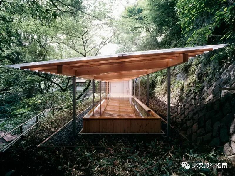 名建筑师荻津郁夫利用30米地势差和一条绵延120米的木柱长廊,将上世纪30年代的西式小楼同传统日式旅馆、现代豪华酒店的必备设施联为一体,成就了这件新派日式旅馆的巅峰之作。