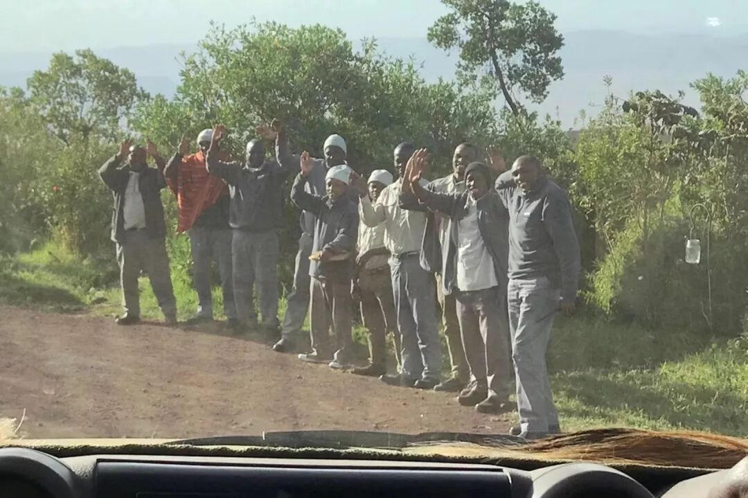 最后的7公里开了大约半个小时,向导跟对讲机说了几句,不久后就看到了载歌载舞欢迎我们的全体Crew。嗯,全体男生,热情无敌。