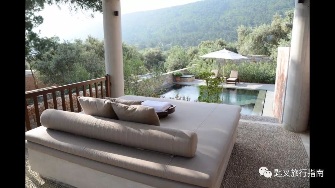 59间客房和50间套房及公寓错落有致地分布在海边绵延起伏的山丘上。每间套房都配有可以眺望爱琴海美景的泳池和室外花园淋浴空间及阳台、露台和日光晒台。躺在露台躺椅上感受土耳其的温暖日光,眼前就是蓝的让人心醉的爱琴海。