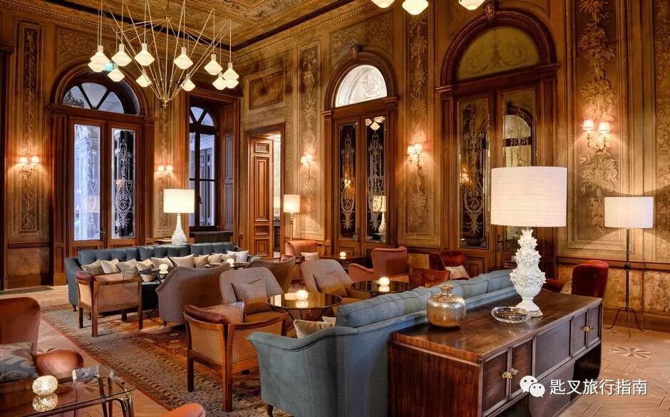 室内装饰则为这里增添了独一无二的宫廷感——19 世纪的原始壁画、大理石地板和红木门,加上20 世纪早期的家具和颇具未来感的吊灯,阿拉伯风情的花纹砖以及产于土耳其、高加索一带的基里姆地毯……