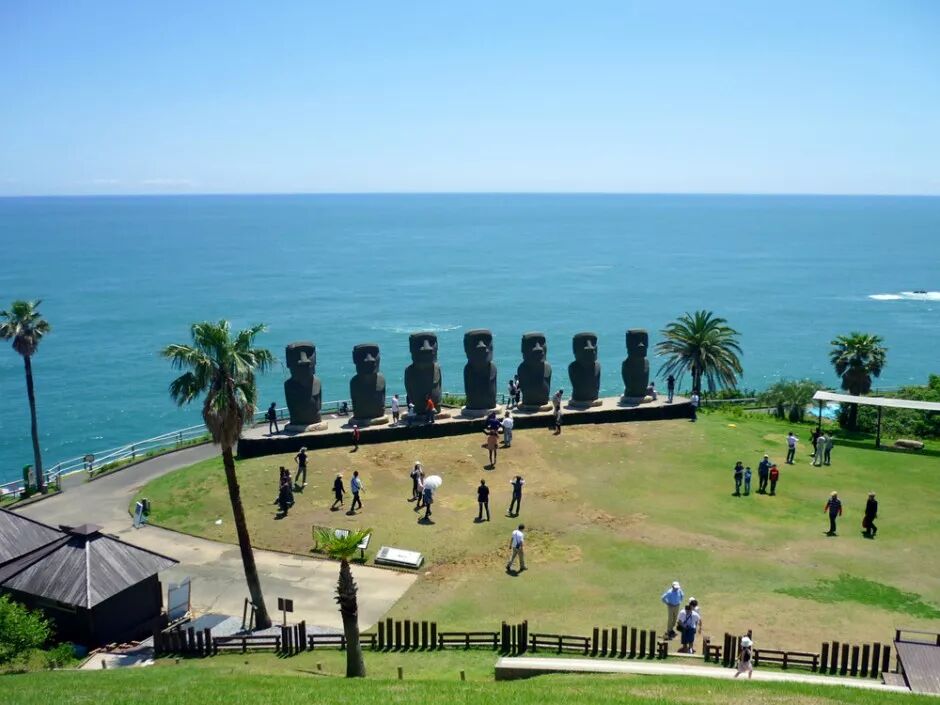 日南太阳花园位于日南海岸稍高的山岗上,园内最引人眼球的就是完整复制复活节岛的7尊摩艾石像。这些石像高5.5米,整个景观非常雄伟壮观,给人来到了复活节岛的错觉。据说左起第三尊MOAI像可提升恋爱运,人气很高。
