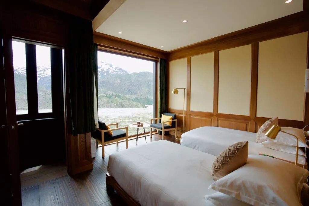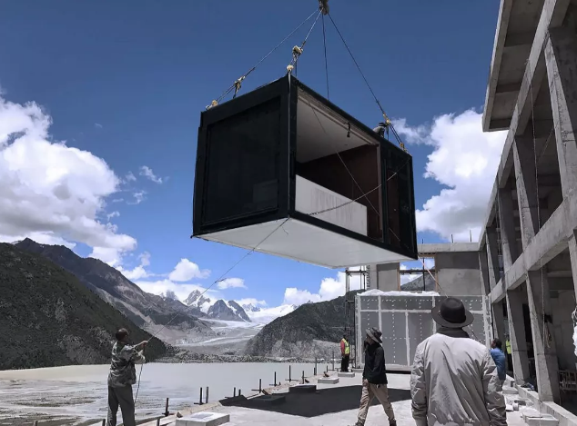 之所以称其为神仙酒店,不仅因为它直面冰川的绝美视野,酒店的建造过程也实属惊人,创造了史上海拔最高,施工难度最大的建筑奇迹--在海拔4200米悬崖上与来古冰川对望。酒店整体由43个模块组成,启用23辆大型货车行驶3500公里,12天途径10余个省市,从上海运抵然乌, 再由20多个国家、地区团队共同完成了这件作品。
