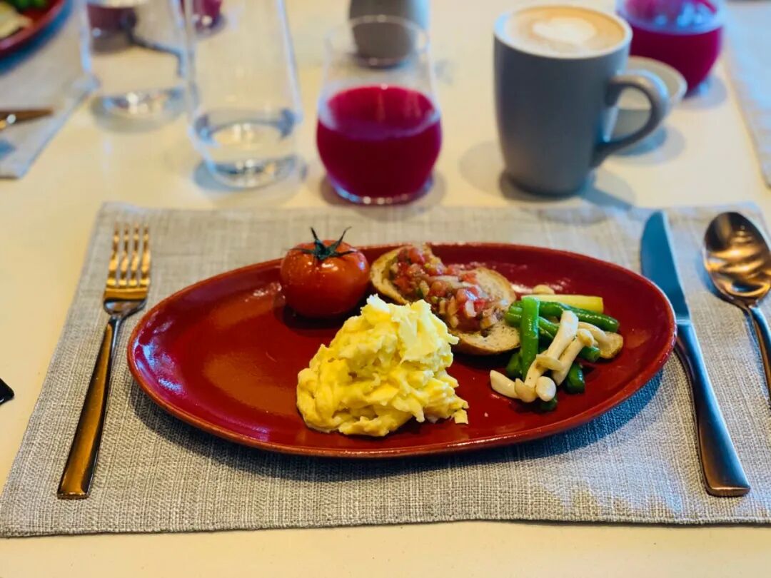零点早餐的食物也很精致。我是第一次在早餐菜单中找到虫草花花菇炖鸡汤。整个菜单吃下来,再配上能量果汁,有一种完全恢复过来的力量感。