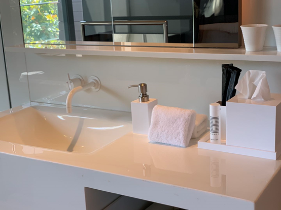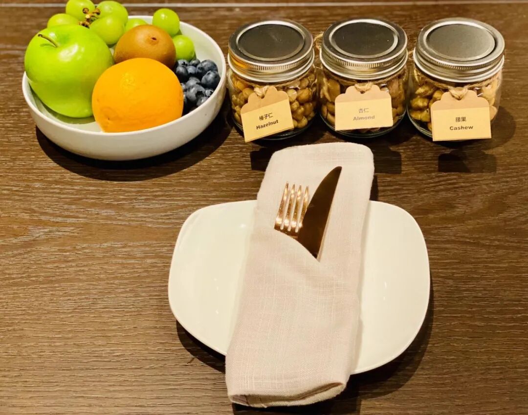 用完午餐前往三楼的客房。全实木家具及地板、自然的色彩等元素被合理的引用在客房中。作为白色爱好者,我对于浴室的纯白处理非常满意。服务人员也早早准备好了我预先要求的荞麦枕头和各式坚果、水果。床下放置的白水晶,据说也有安神助眠的能量。