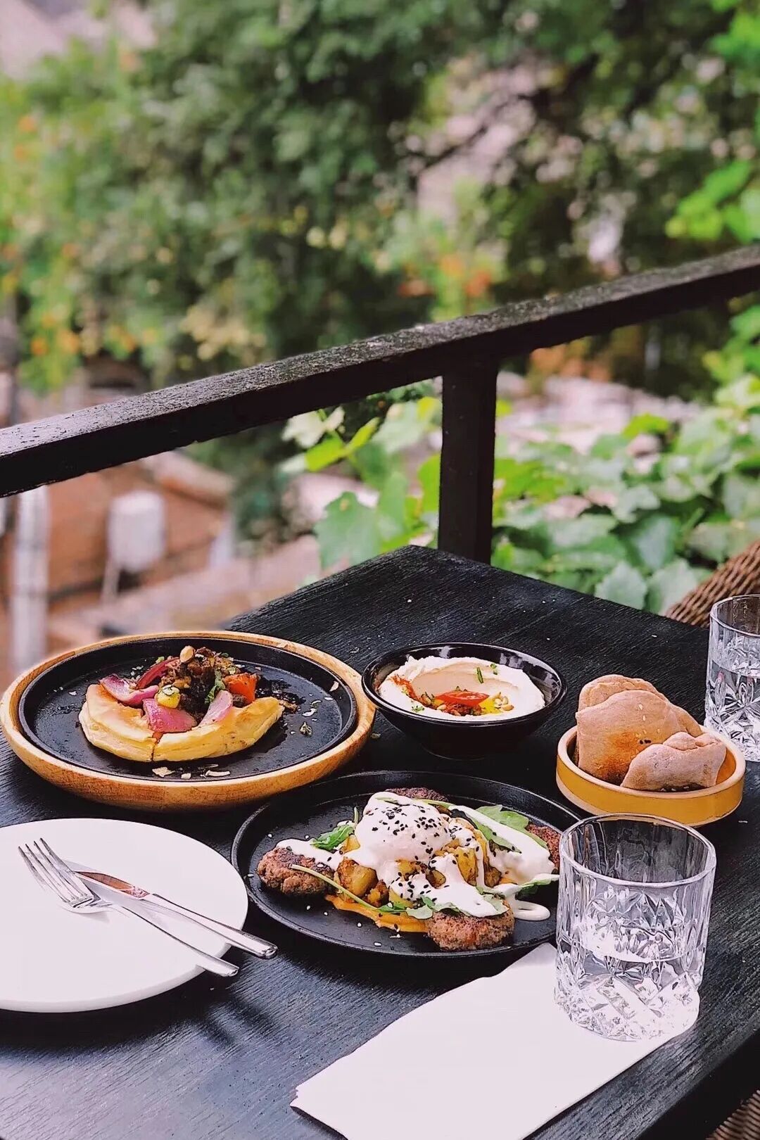 在宝钞胡同里的Toast the Orchid吃个北非地中海特色的早午餐,秋意盎然中坐在漂亮的小院子里吹吹风。闭上眼睛只用嗅觉就知道,共用一个院子的网红面包店The Bake Shop正在售卖香甜的法式面包卷。
