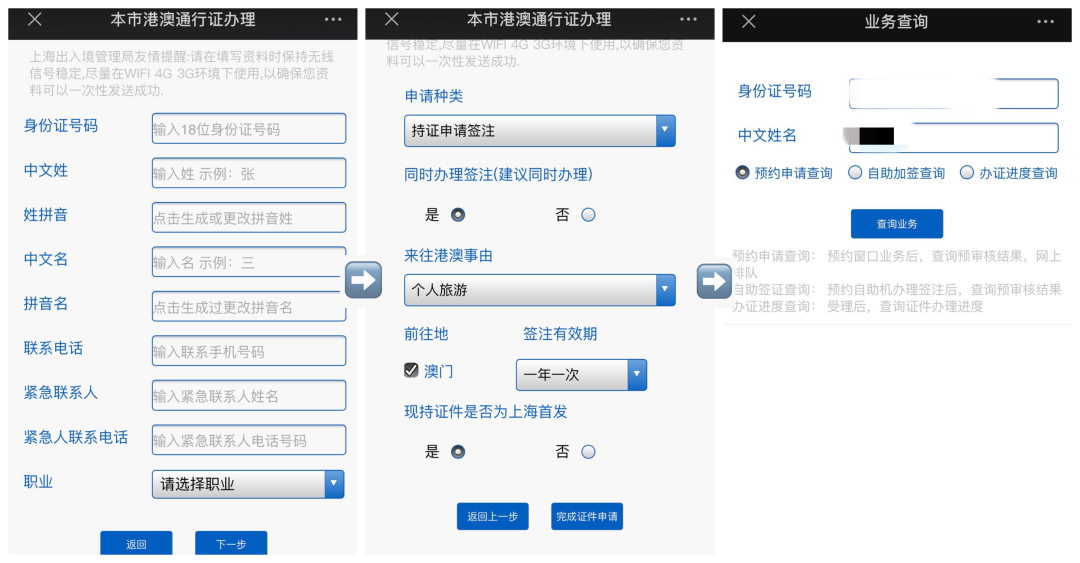如果已有通行证在手,目前获得澳门通行证加签分为3个步骤:预约、送证和领证。与疫情前的自助加签,即时领证相比,主要是需要再来一次出入境办公室领证,或者通过快递取证。还有一点需要注意的是,通行证起码5个工作日才能到手。以在上海申请为例,可以在上海公安出入境管理局公众号上通过“业务申请”进行预约。选择港澳通行证分类后,需要填写一些个人信息。最后,跳出个人身份证号码框,就意味着已经成功申请到了预约。接着,马上就会收到公众号的预约审核通过的通知。直接点击“备注”后的紫色字样,跳转到预约界面进行预约。大家可以根据自己的居住地,就近选择办证地点以及办证日期和具体时段。预约确认后,在已预约的时间拿着身份证和通行证去办理就可以。由于预约控制了不同时间段的人数,整个办理过程也只有7、8分钟, 几乎不用排队。办理过程一环扣一环,最后在窗口确认好信息拿着付款单,扫码付费即可。本市户口的办理者会在窗口被告知取件日期,一般是4-5个工作日可取,如果不急也可以使用收费快递业务。外省市在沪办理需要等短信通知取件,出签需要10个工作日。大家都很关心的核酸检测环节,是我在出行前被反复问到的。目前全国都有核酸检测点可以做,在上海各区都有指定医院可以预约,建议提前预约。在没有预约的情况下,也可以带着身份证和社保卡直接去医院检测,但还是要提前查好所选择医院的工作时间,避免扑空。上海的几家核酸检测点咨询下来,基本都是要同时做鼻咽拭子和口咽拭子。当然不同医院也会有不一样的反馈,大家可以通过网上罗列的各区检测点信息进行具体的查询。考虑到行程安排以及检测报告有效期的问题, 我选择在广东游玩过程中,在当地医院完成检测。首先,跨省市检测可行;其次,小城市检测人少。从填表到付款再到口腔取样,整个流程只花了15分钟。检测当天傍晚,我已经通过粤康码小程序得知了核酸检测阴性的结果。如果需要纸质检测报告,第二天需要再来一趟医院。如果当天需要从陆路口岸过关,出示带有检测结果的粤康码就可以。但乘坐直飞澳门往返的航班,一定要带好纸质检测报告才可以出入境!上海机场对入境的国际航班的检查非常严格的。没有纸质检测报单,只持有粤康码记录,落地浦东会直接面临被隔离14天的风险。 核酸检测的有效期是从检测后一天开始算起,时长一共7天。比如10月12日做了检测,有效期到10月19日24:00截止。在这期间出入境都不需要重复检测。如果人在澳门,回来入境前过了有效期,可以预约澳门当地的检测机构再做检测。目前澳门有两家检测点,都建议提前预约。口咽拭子取样疼吗?答案是:不疼!只是用棉签在咽喉处取一下唾液,1秒结束,完全不用担心。除了陆路过境,直飞澳门还是要随身携带在有效期内的纸质检测报。正是因为这样的规定,陆路过境还是我们的首选。新的横琴口岸及综合交通枢经过3年多的建设,在今年8月正式投入运营。站在珠海横琴和澳门交界处的莲花大桥上,东望澳门,向西眺望,通关大楼映入眼帘。抵达前,需要准备好粤康码通关凭证页的截图,以及澳门健康码页截图,两图在手就通行无阻了。走进大厅,一侧是入境澳门一侧是出境澳门。指示牌清晰,顺着指示下扶手电梯,出示澳康码通关凭证页后就会被放行。经过一排排 “三道门”合作自助查验通道时,只需把证件放置在扫描区,一次性刷证件、按指纹、取凭条,不到30秒,就可实现极速通关。到了澳门一侧还需要再次出示核酸检测为阴性澳门健康码页的截图。新横琴口岸全天24小时都可以过关。如果开车,乘客和车是分开过海关的,入境后再会合。我从头到底走大约5分钟,就已经站在澳门莲花口岸出租车上下客区了,快速程度超出想象。后来也问问了走拱北口岸的朋友,都表示国庆期间人也不多,不需要排队,基本就是一路不停走过安检就到了澳门。 入境后,第一件事就是直奔去酒店check in,开始48小时澳门之旅。