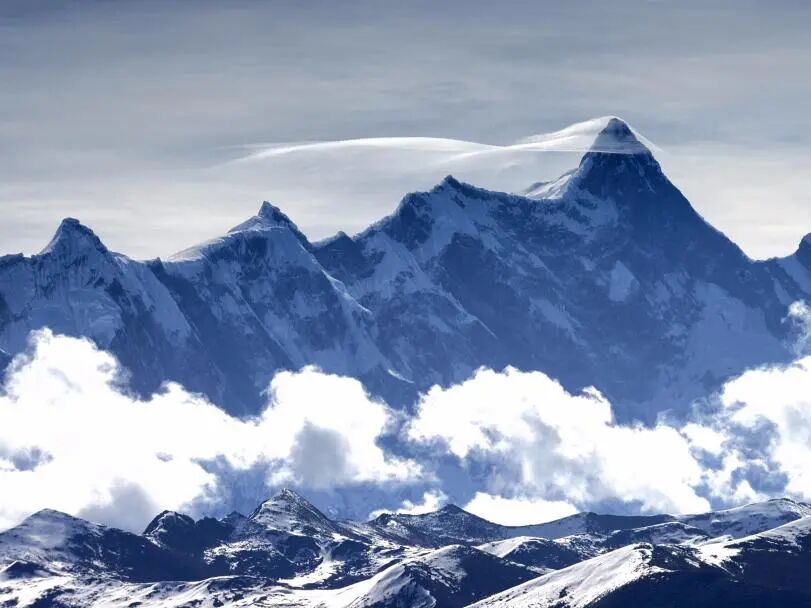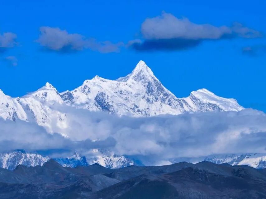 南迦巴瓦峰的美,是经过官方盖章认证的,《中国国家地理》曾将南迦巴瓦峰列为中国十大最美山峰的第一名。巨大的三角形峰顶挺拔陡峭,向上刺进天空,美的惊心动魄。