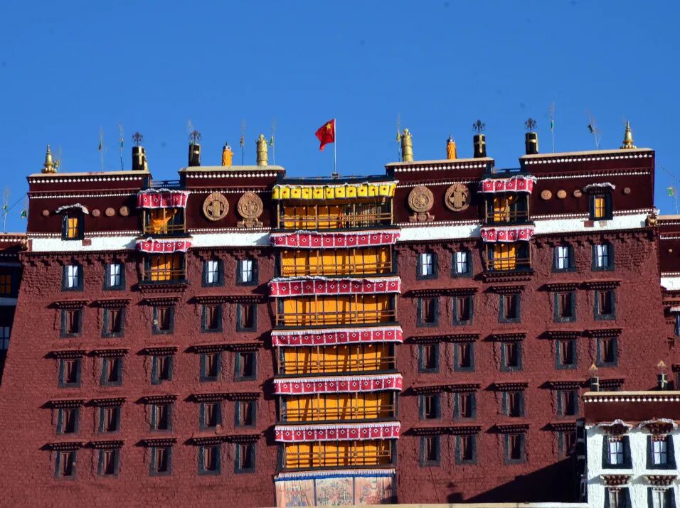 耀眼的红白占据了大部分墙面,下方的白宫与上方的红宫功能各有不同。白宫高达七层,其中第四层是主殿,也就是进行重大宗教活动的场所。而红宫则是供奉佛像和举行宗教仪式的场地。