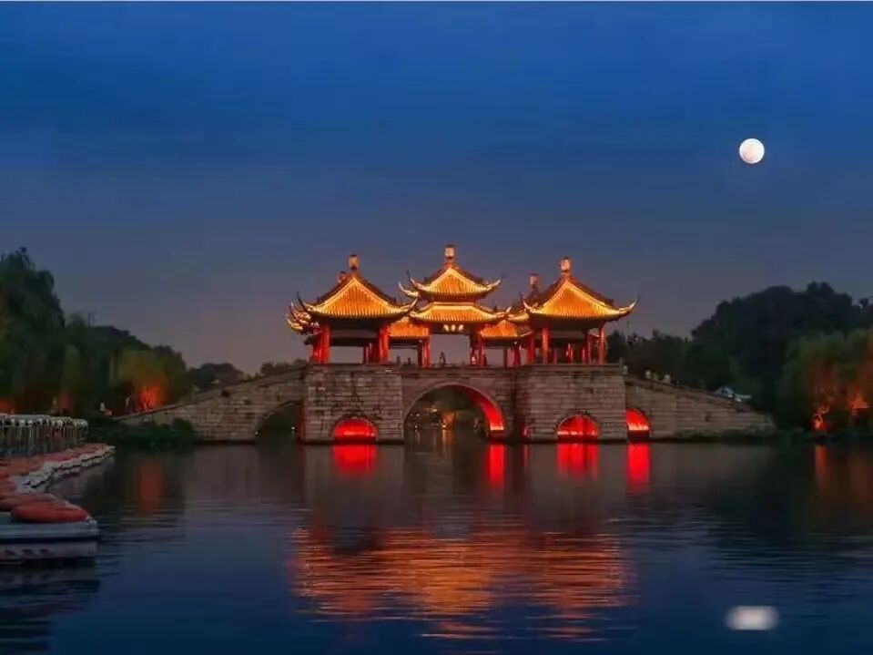 二十四桥明月夜,这里正是当年玉人吹箫处。平静的瘦西湖上这座汉白玉桥如玉带一般飘扬俊逸。扬州人独爱月光,于是建造瘦西湖的工匠便耗尽心力,让月光在这里永不落下。
