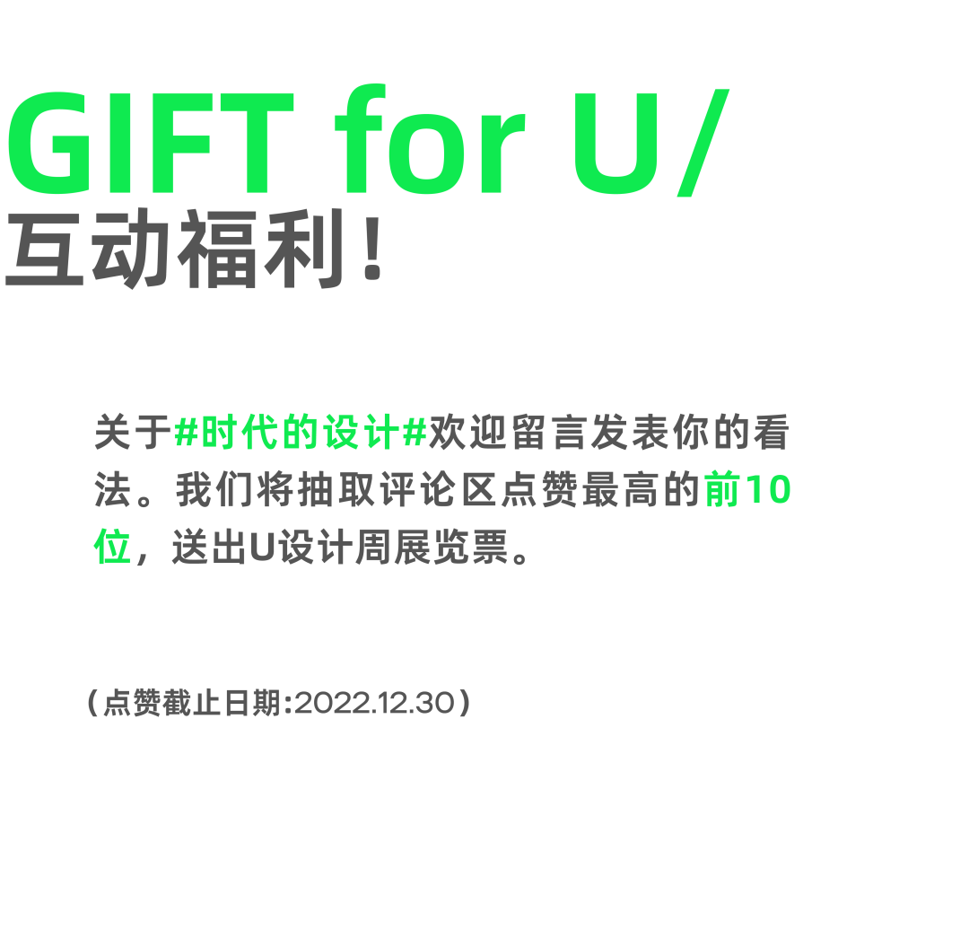 我们都在期待“设计的时代”,但是更需要我们去做好“时代的设计”,因为只有做好时代的设计,才会有设计的时代;每一种设计,都有属于自己的时代,这个时代,是潮流艺术的时代,是元宇宙的时代,是设计数字化的时代,是生活方式的时代……时代,是注脚,是连接,是充满想象的可能……时代的设计,是一种创新不止的思考,是一种不断演进的姿态,是一种奔向愿景的行动……无论是时代的设计,还是设计的时代,都需要我们一起思索,一起激荡,一起探寻!