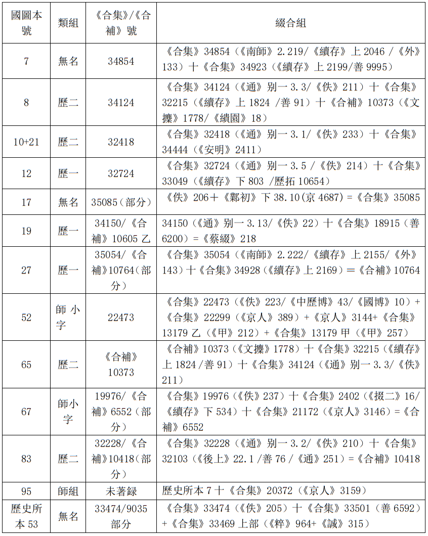 我們對照國圖本和《中歷博》《國博》,《國博》僅著録國圖本90片,《中歷博》著録102片。二書所著録又有异同,根據國圖本比對,存在《中歷博》有《國博》無、《中歷博》一號《國博》分爲二號、《國博》有《中歷博》無等情况: