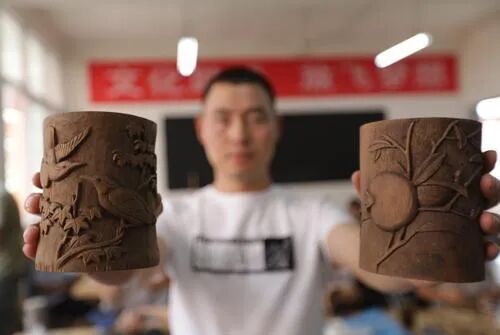 ▲大足区职教中心,学员展示竹雕作品。齐岚森 摄/视觉重庆