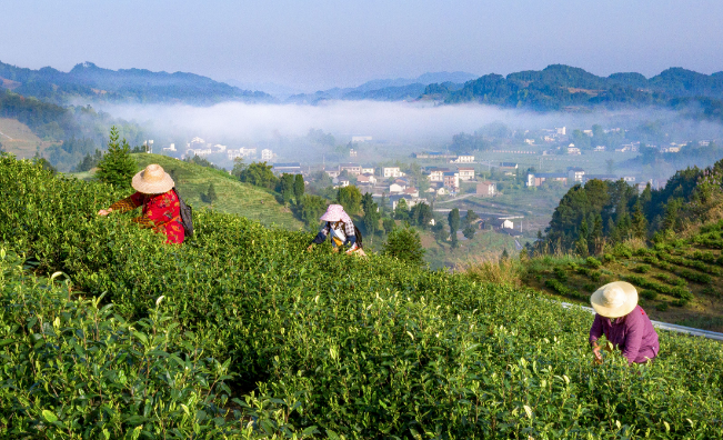 ▲4月10日,南川区兴隆镇金花村村民在采摘白茶。瞿明斌 摄/视觉重庆