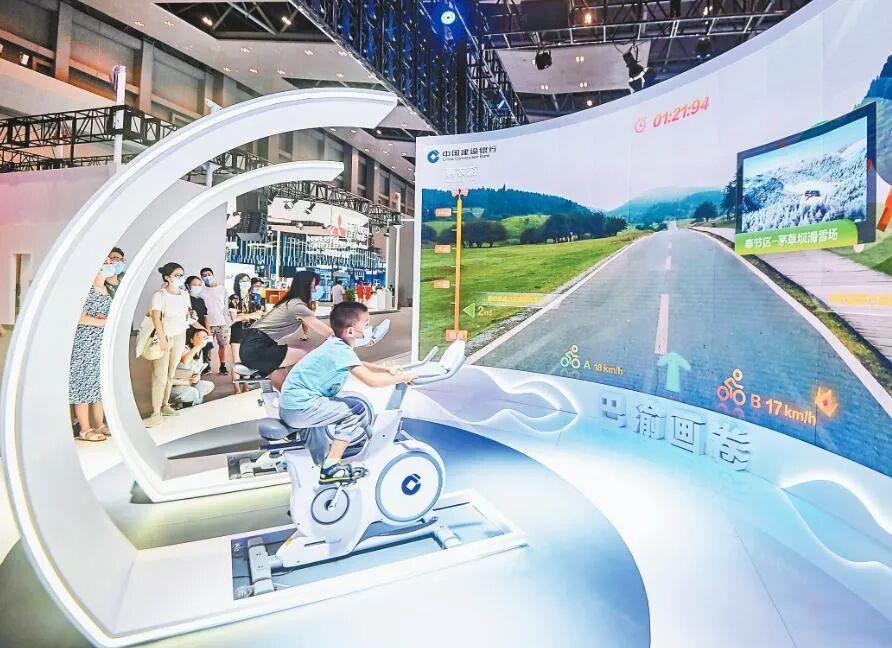 ▲智能化让生活更精彩。2021智博会现场,小朋友”漫游“巴渝。龙帆 摄/视觉重庆