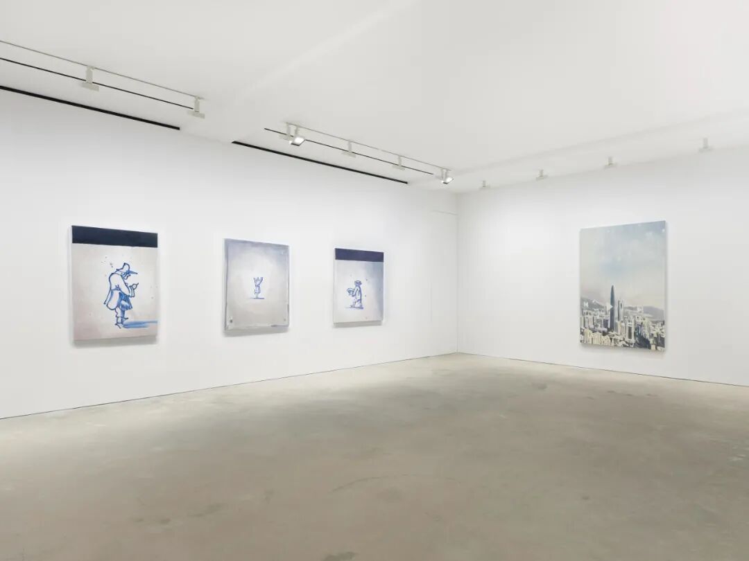 另外一张画中呈现的癫狂牛仔形象则出于对紧张的中美关系的强烈印象。牛仔的形象来自大卫林奇的《穆赫兰道》,他每次出现都预示着厄运,是一个神秘而魔鬼般的形象。深入研究后,我发现这一形象可再向前追溯到Tom Mix饰演的著名的默片牛仔形象。好莱坞电影博物馆中Tom Mix的牛仔戏服像极了《Mwana Kitoko》中比利时王的制服。这些丰富而交汇的潜流是我创作中的重要元素。此次在香港的展览中有件题为《深圳》的作品,除了与香港地缘关系之外,这个所谓“中国的硅谷”也映射着中国开放的历史和过去五十年内不可思议的发展。我此前在中国有两次与机构共同策划展览的经历,非常有意思,也教会了我“耐心”(笑)。我并没有去过深圳,图像取自苹果电脑上播放的纪录片中一帧视频截图,画面上可以看到快进箭头。我在2001年也用类似的方法创作过一副有关上海的作品,基于报纸上的一张摄影。《深圳》这件作品中既有着关乎发展和速度的隐喻,又因为纪录片本身带有一种怀旧,是一种有趣的冲突。这一系列的创作归根结底是关于“对话”和“交流”,因为艺术创作只有在多层次和多样的前提下才能具有普世性。![]()