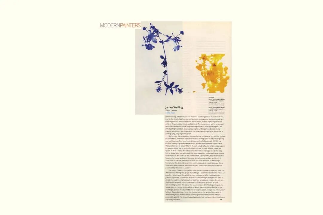 自2004年起,美国摄影家詹姆斯·威灵(James Welling)开始创作《花》的系列。这些作品现散落于纽约大都会博物馆、洛杉矶哈默博物馆、纽约惠特尼博物馆与克利夫兰艺术博物馆的馆藏中。