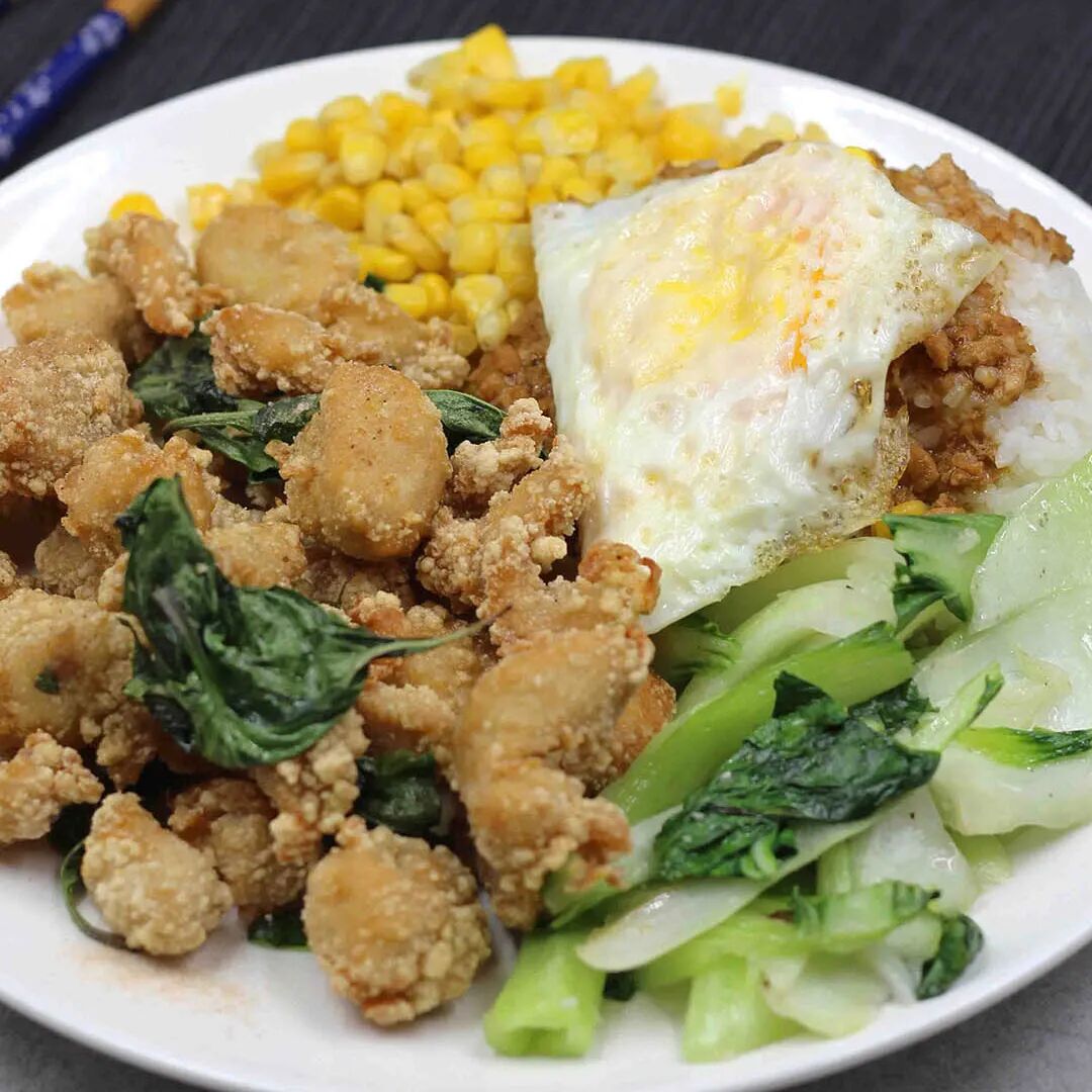 他们家的招牌盐酥鸡一定不能错过!罗勒叶配上鲜辣咸酥的鸡块,绝对是味蕾狂欢的盛宴。想吃炸鸡排的也可以点上一份酥炸鸡排饭,绝对让你大呼满足过瘾!