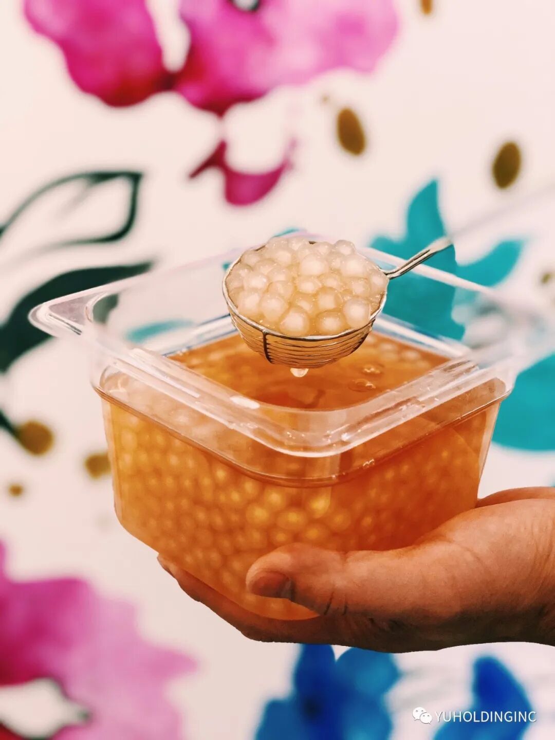 白玉珍珠使用台湾顶级龙眼蜂蜜闷泡,在整个过程中蜂蜜的香甜侵入珍珠内部,在Q弹绵软的同时又增加了蜂蜜的风味。适合搭配花茶或果茶饮用。