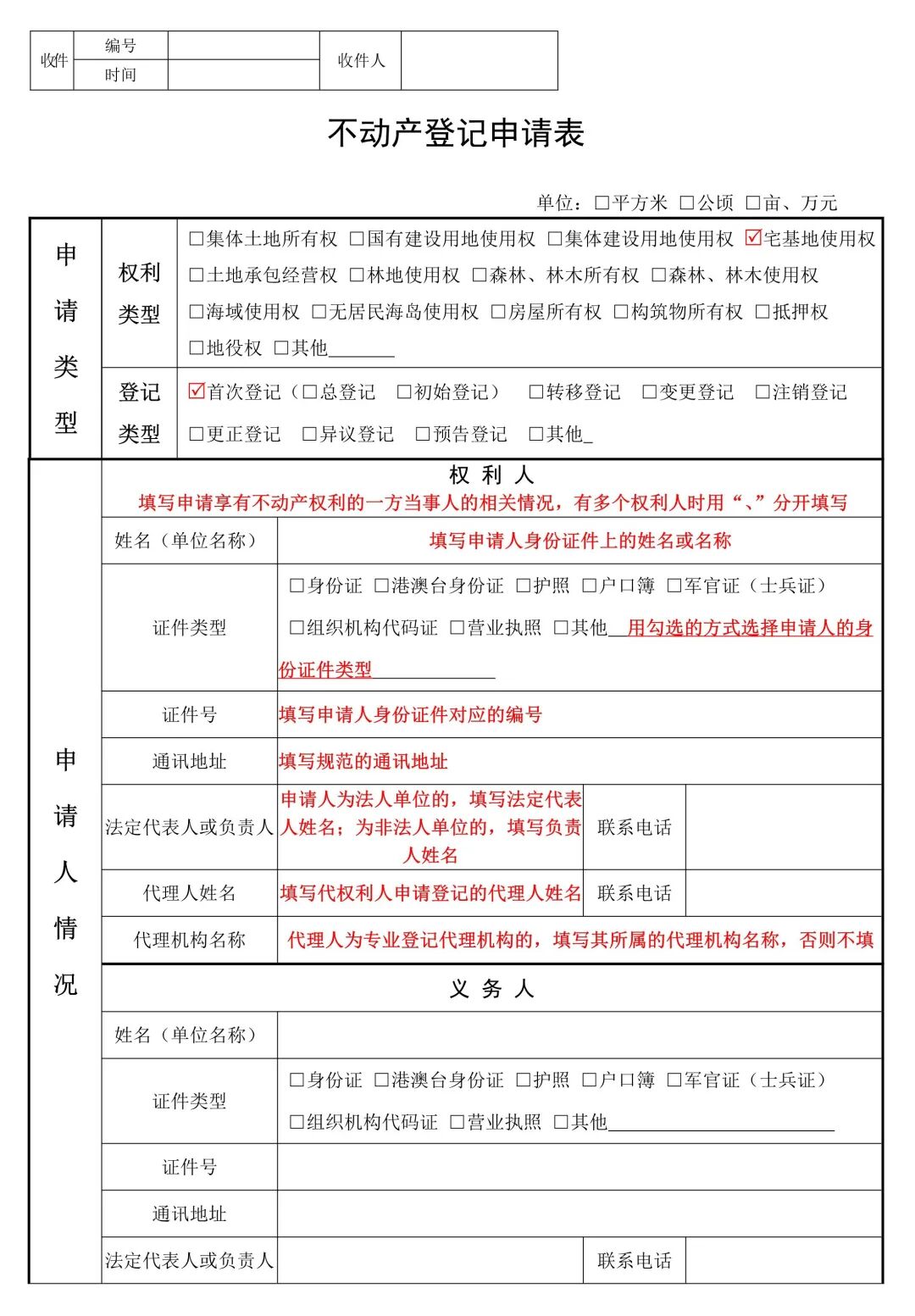 (1)不动产登记申请表(共2页,首页示例如下)