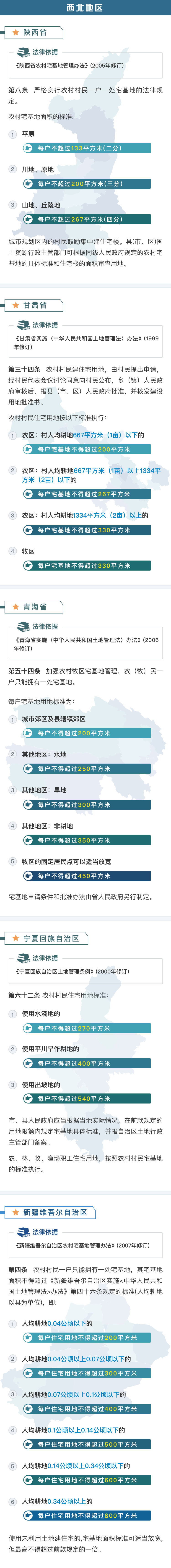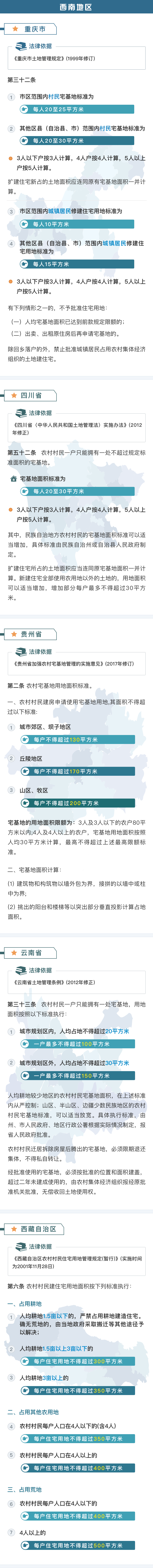 一张图看懂农村宅基地用地标准(华东、华中、华南)