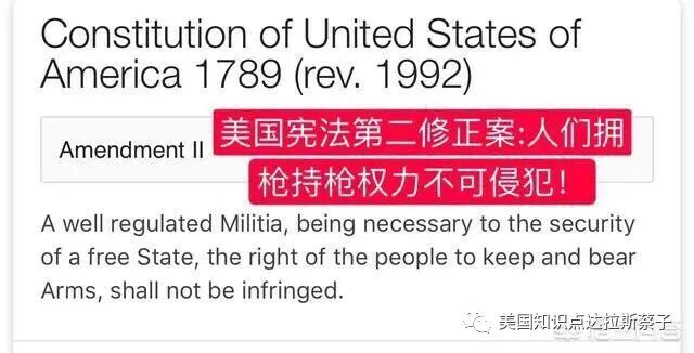 1,美国宪法第二修正案捍卫了美国人拥枪持枪的权力不可侵犯。