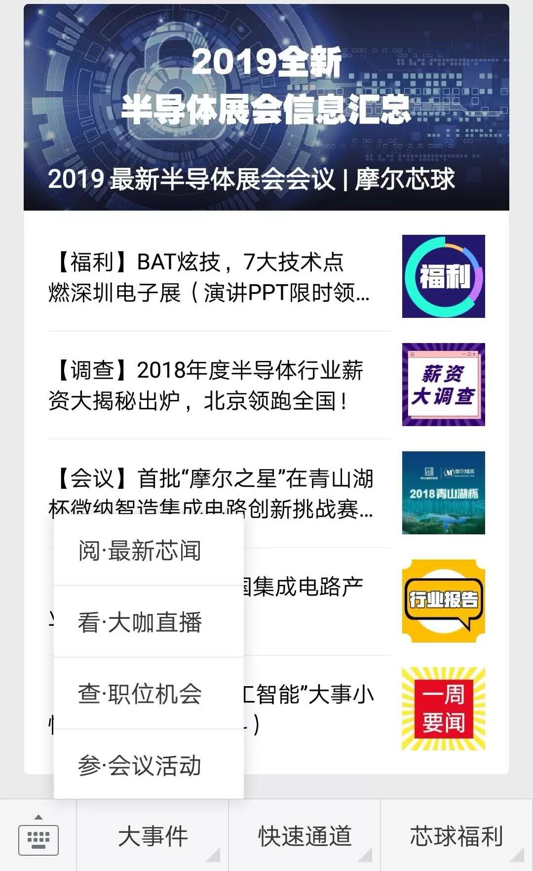 摩尔芯球特别调研了2019知名的电子半导体产业盛会,方便大家了解和参与,扫码了解最新半导体行业会议信息,半导体产业会议信息实时更新。