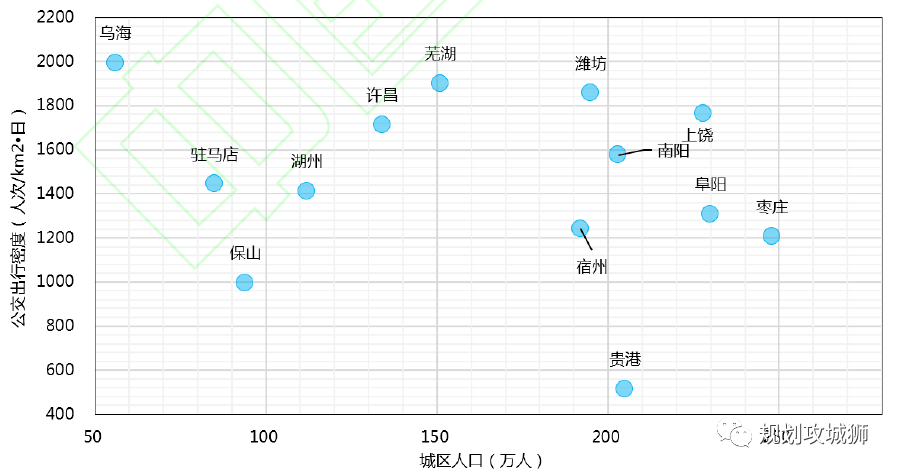 图2 城区人口与公共汽车出行密度关系