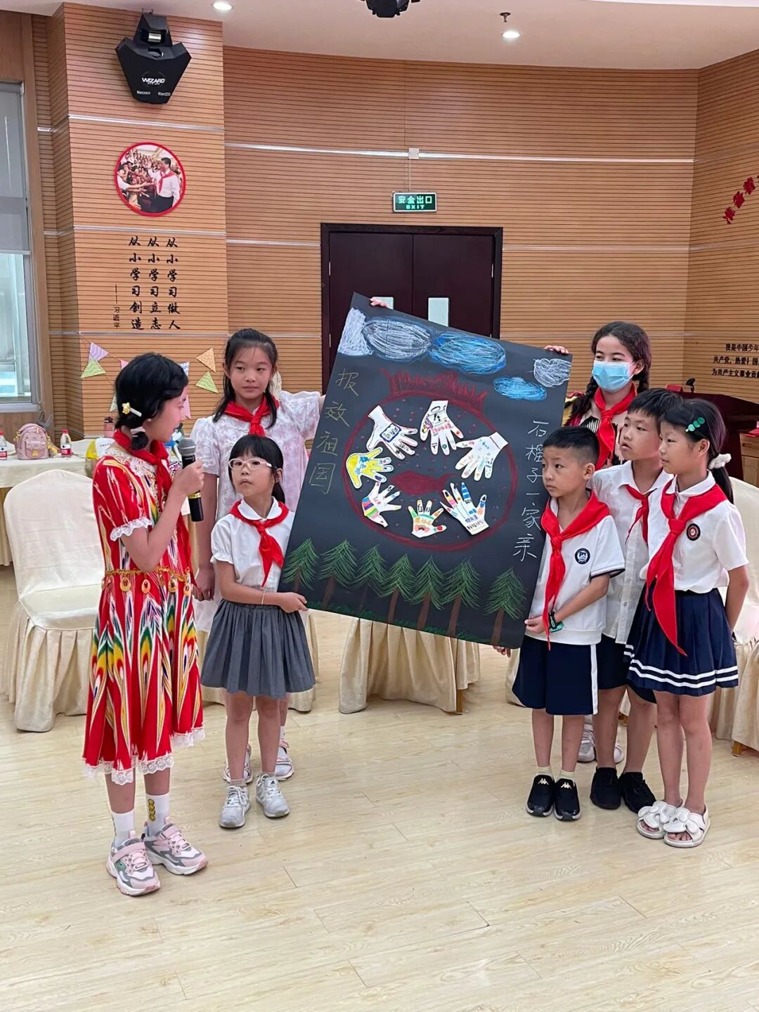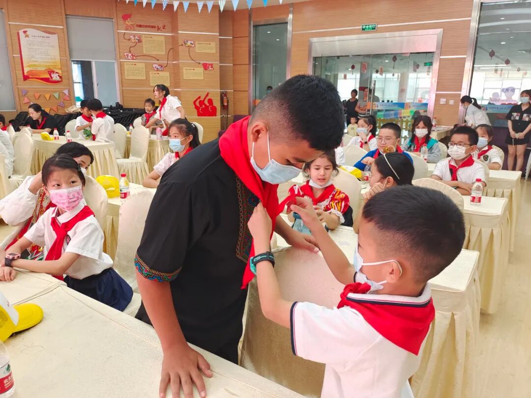 在开营仪式上,两地的少先队员们齐唱《中华人民共和国国歌》、《中国少年先锋队队歌》,互相为对方戴红领巾、敬队礼。稚嫩嘹亮的歌声、姿势标准的队礼,展示了两地少先队员们青春向上的精神面貌,而那一条条“特殊红领巾”见证了这份跨越山川瀚海的美好友谊。
