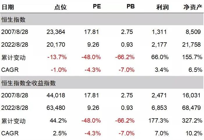 简单的说就是:从2007年8月28日到2022年8月28日,整整15年,恒生指数从23364点跌至20170点,累计下跌13.7%。
