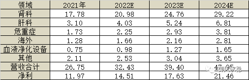 其他,包括透析粉液、已经刚刚拿到欧盟证书的透析器等,暂且按照20%增长率计算,及2.11*(1+20%)^3=4.58亿。