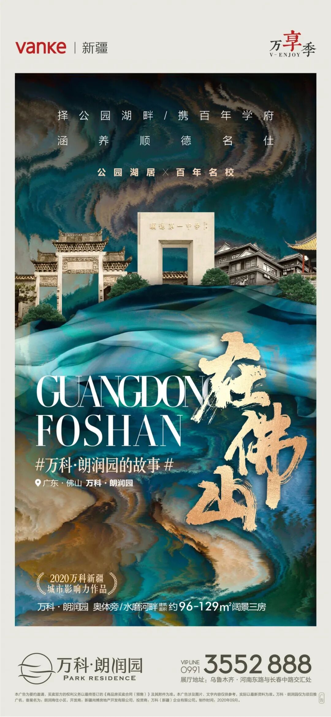 从三部短片的悬念起势,会展万科、滨水人文、健康住宅关键词依次释放,可谓是吊足了胃口;再到扬州、佛山到乌鲁木齐,人文书院的故事历经三城传承,可以看到“朗润园”产品系的严苛择址;以及滨水微光的创新有声海报,耳边的磁性男音相伴潺潺流水,滨水人文的意境莫过于此。