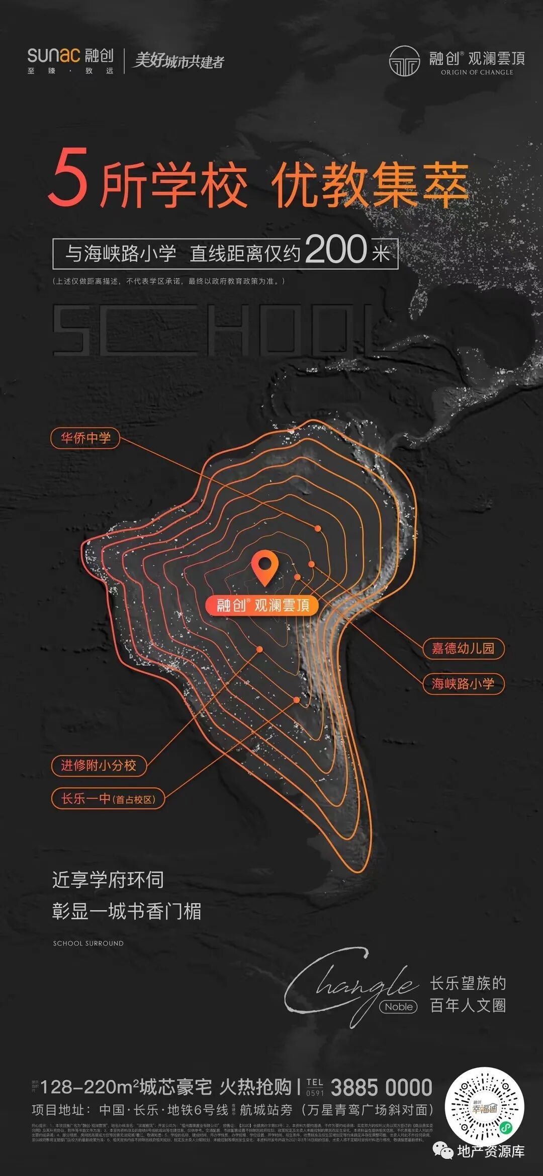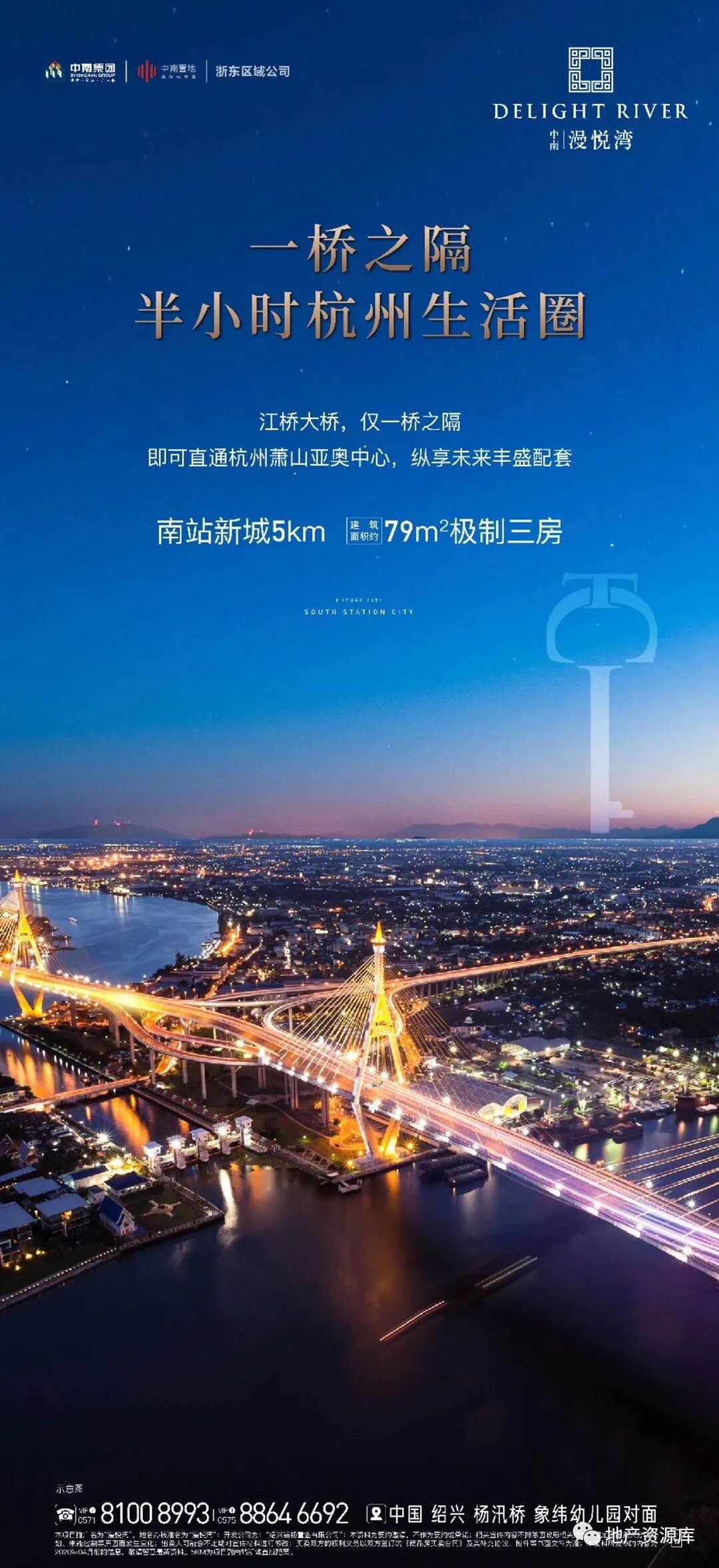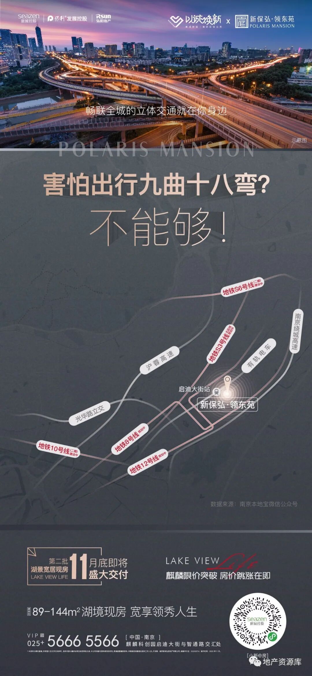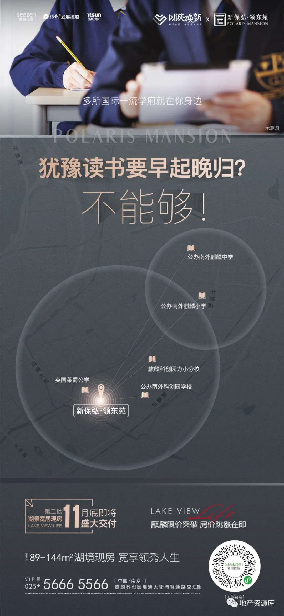 第2种思路是:区域实景图或区位图+实景图的形式,这种思路的整体质感跟第一种相比,还是差了一些。毕竟实景图加上很多文案,还是比较难设计的,想要画面干净,是比较难的。
