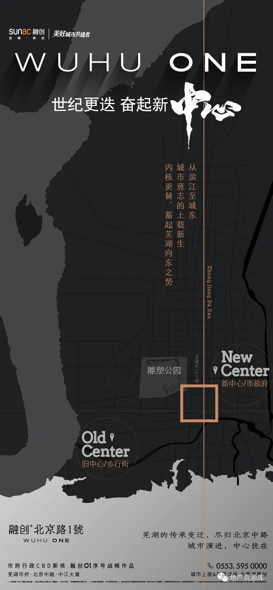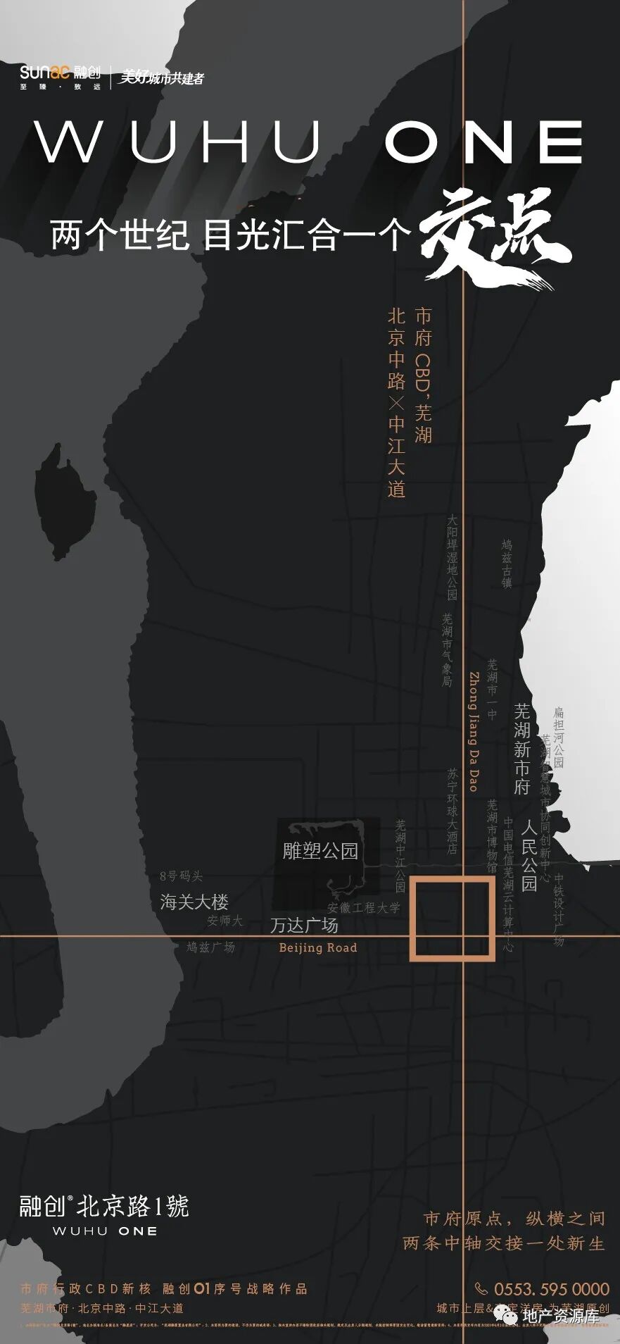 我们也可以看一下融创·北京路壹号的设计思路,缩小或者弱化区位图的占比,是不是好很多?