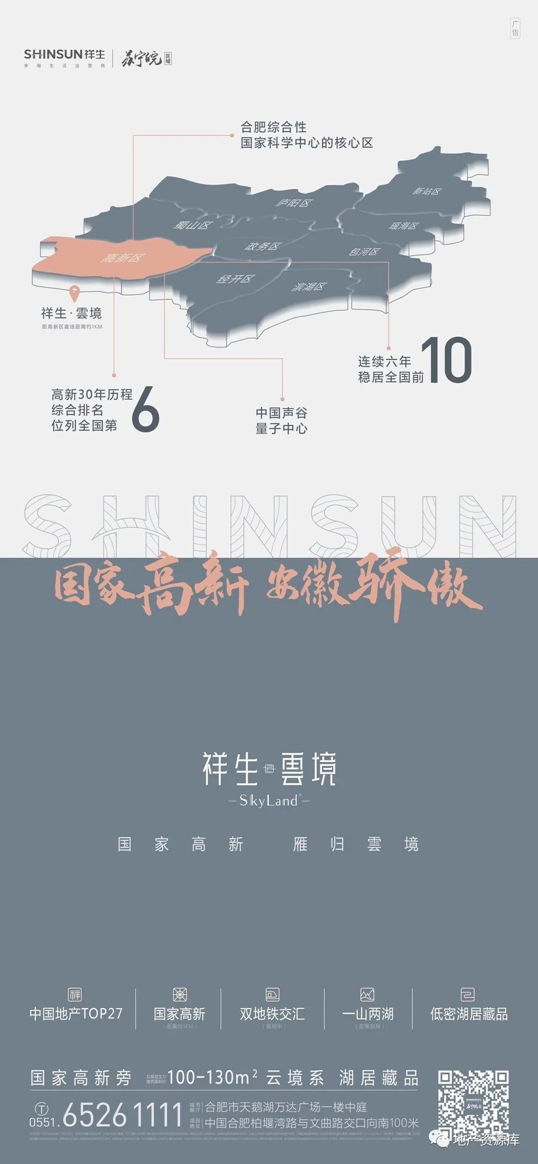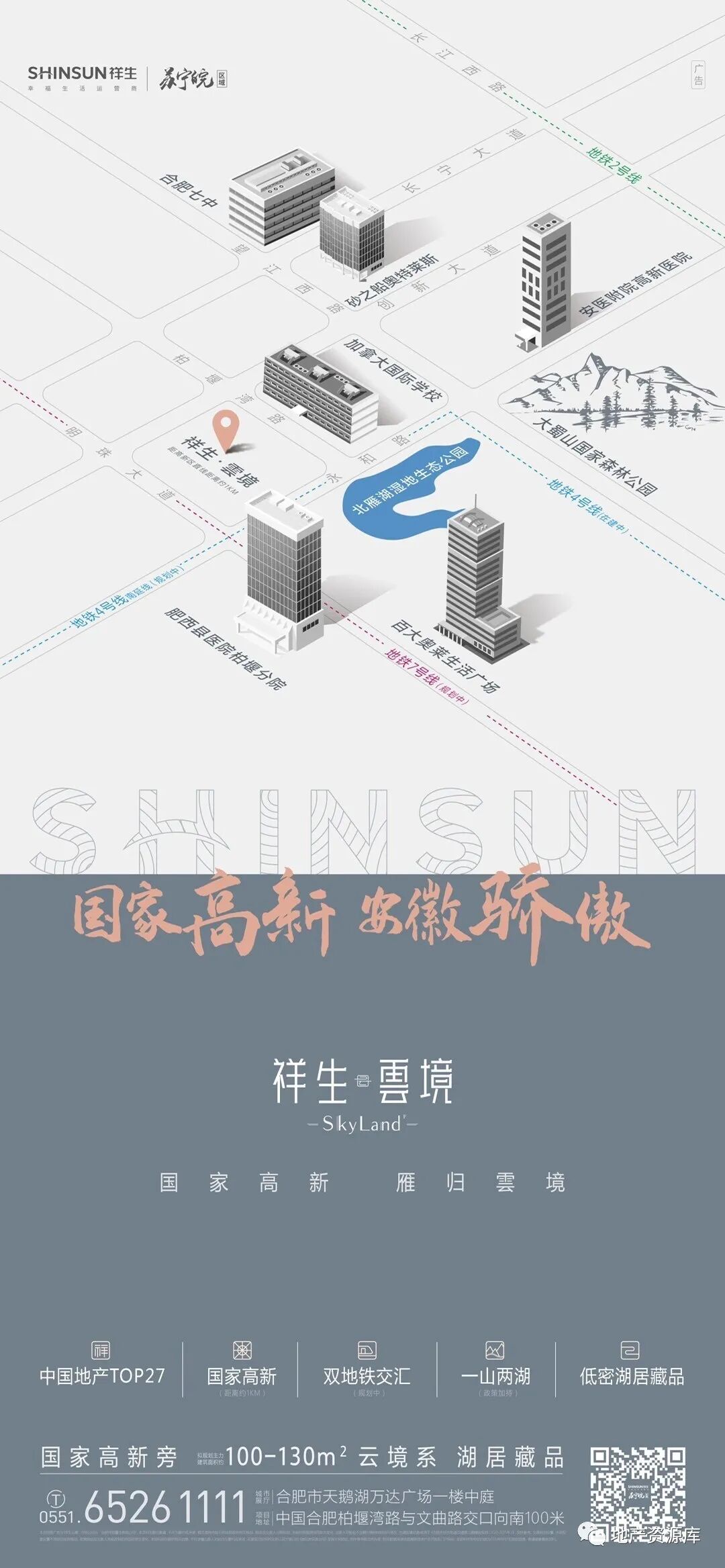 最后我们来欣赏一下祥生雲境的海报设计(来自合肥西元品牌的作品),三维的区位图设计配合地标小模型,让整个画面显得很有空间感,整体画面也很干净,值得推荐。