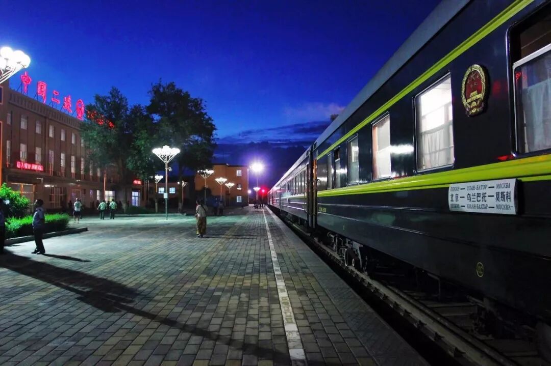 第一天在国内运行,晚上到二连浩特。在从二连到外蒙之前,要停上三四个小时,把火车底下那个车轮给换了。因为中国铁路的轨距和蒙古,俄罗斯不一样,中国的是标准轨,1435 毫米,蒙古和俄罗斯的是宽轨,有 1520 毫米。
