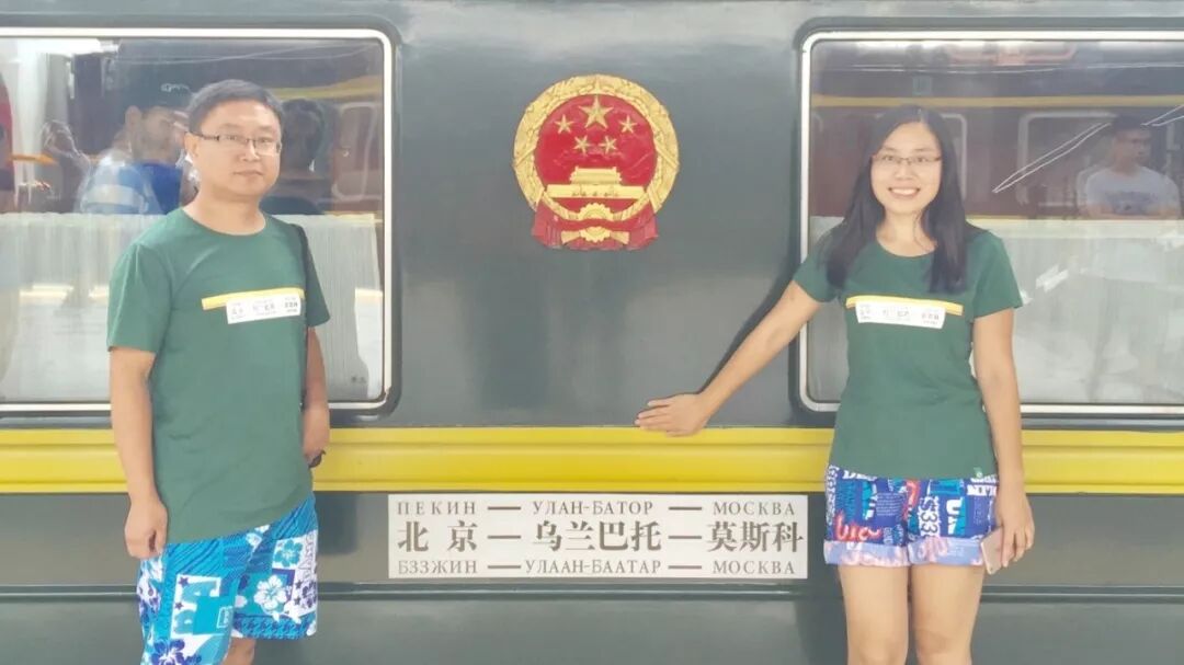 ■ 2015 年张永铭第五次乘坐北京-乌兰巴托-莫斯科 K3 次国际列车,右边是他妻子